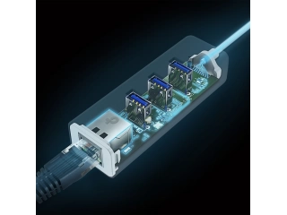 - Hub USB tipo C de 3 puertos y adaptador Gigabit Ethernet UE330C