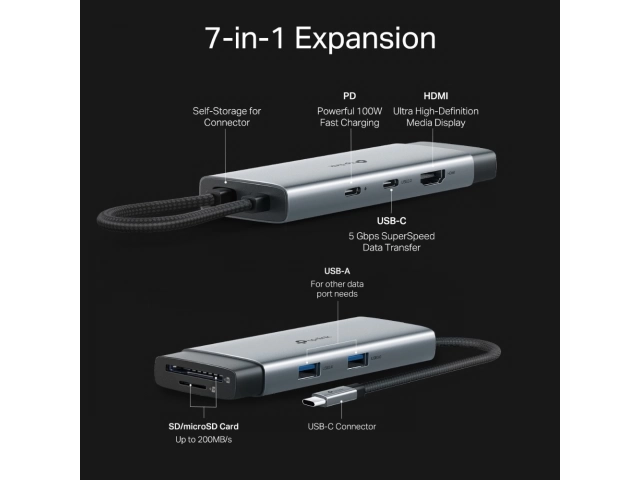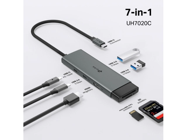 Hub, TP-LINK, UH7020C, USB, tipo C, 7 puertos, Cable, 180 mm, concentrador
