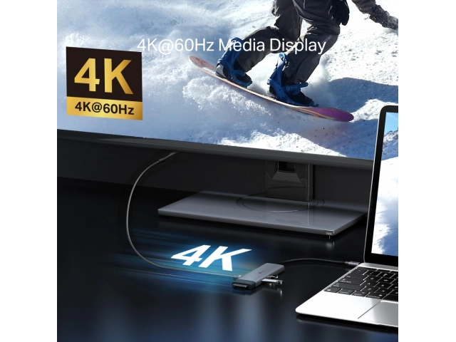 Concentrador USB-C 9 en 1: UH9120C convierte un solo puerto USB-C en 9 puertos con HDMI 4K a 60 Hz, SD y microSD UHS-I, suministro de energía de 100 W, 1 puerto de datos USB-C, 2 puertos de datos USB-A.