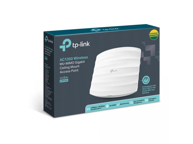 Access Point, Punto de Acceso, TP-LINK, EAP225, AC1350, WiFi 5, Dual Band, 5 GHz, 2.4 GHz, 1 Puerto, Gigabit, PoE af, PoE pasivo, Montaje en Techo, Montaje en Pared