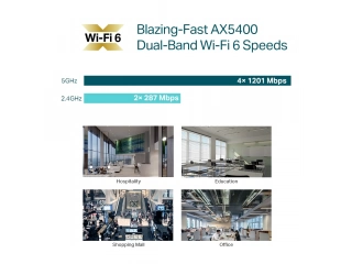 WiFi increíblemente rápido de 6 velocidades: 574 Mbps simultáneos en 2,4 GHz y 4804 Mbps en 5 GHz totalizan velocidades WiFi de 5378 Mbps.