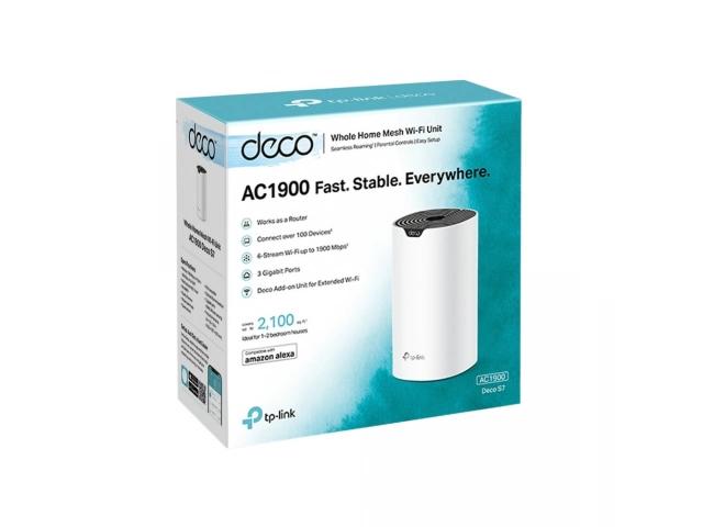 Access Point, punto de acceso, TP-LINK, Deco S7, Pack x1, AC1900, WiFi 5, Mesh, Dual Band, 5 GHz, 1300 Mbps, 2.4 GHz, 600 Mbps, 3 puertos Gigabit