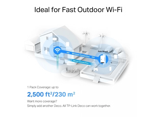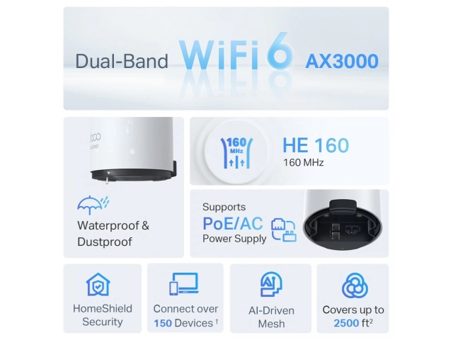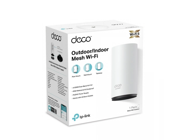 Deco X50-Outdoor-1, Outdoor, Access Point, punto de acceso, TP-LINK, Deco, X50-Outdoor, Pack x1, AX3000, WiFi 6, Mesh, Exterior, Dual Band, 5 GHz, 2.4 GHz, 2 puertos Gigabit, PoE, WAN/LAN
