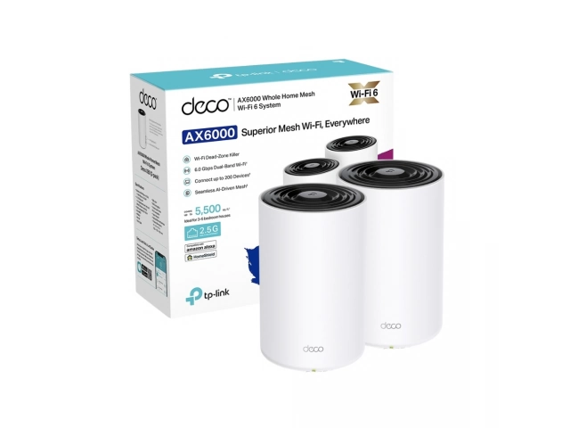 Access Point, punto de acceso, TP-LINK, Deco X80, Pack x2, AX6000, WiFi 6, Mesh, Dual Band, 5 GHz, 4804 Mbps, 2.4 GHz, 1148 Mbps, 1 Puerto, 2.5G, 2 puertos, Gigabit, Interior