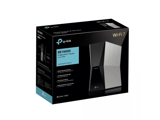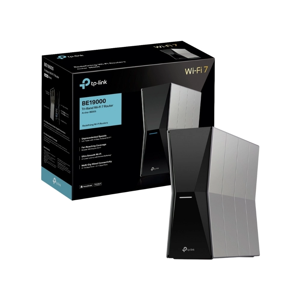Router, Inalámbrico, Wireless, TP-LINK, Archer BE805, BE19000, WiFi 7, Mesh, Tribanda, 6 GHz, 11520 Mbps, 5 GHz, 5760 Mbps, 2.4 GHz, 1376 Mbps, 2 Puertos 10G, 4 Puertos Gigabit, 2 Puertos USB 3.0