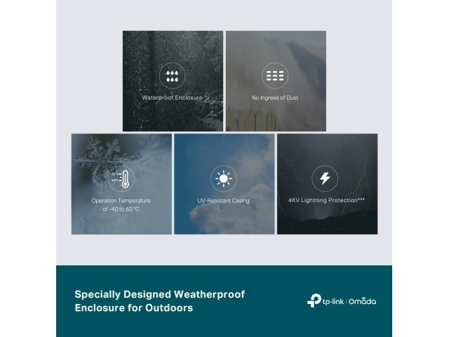 Resistente a la intemperie: Carcasa IP55 resistente al agua, al polvo y a los rayos UV. Las temperaturas de funcionamiento de -40 a 60 °C y la protección contra rayos 4KV garantizan además un funcionamiento estable frente a las duras condiciones exteriores.