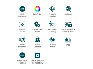 Defensa activa: Activa la alarma con luz y sonido al detectar comportamientos sospechosos.