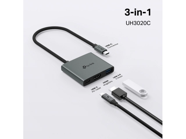 Hub, TP-LINK, UH3020C, USB, Tipo C, 3, Cable, 180 mm, concentrador
