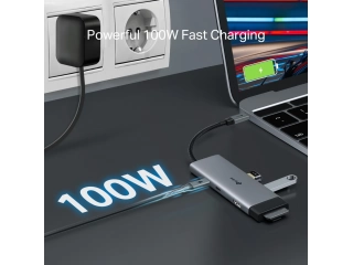 Potente carga rápida de 100 W: conecte el cable de carga al UH9120C y entregue continuamente hasta 100 W de potencia a su PC mientras transfiere archivos o transmite medios.