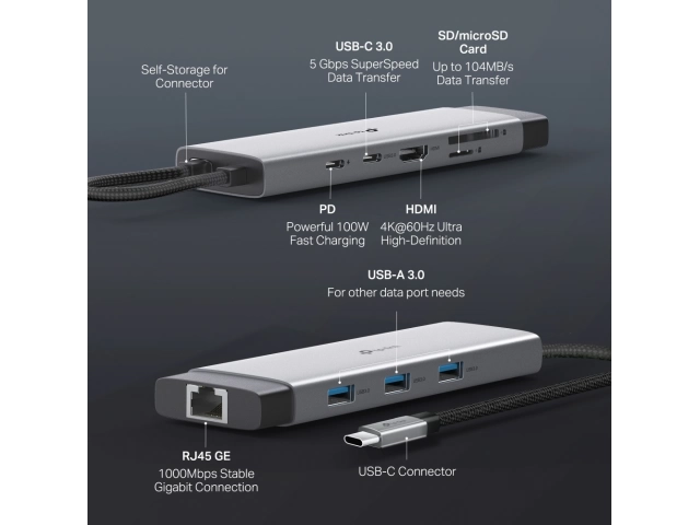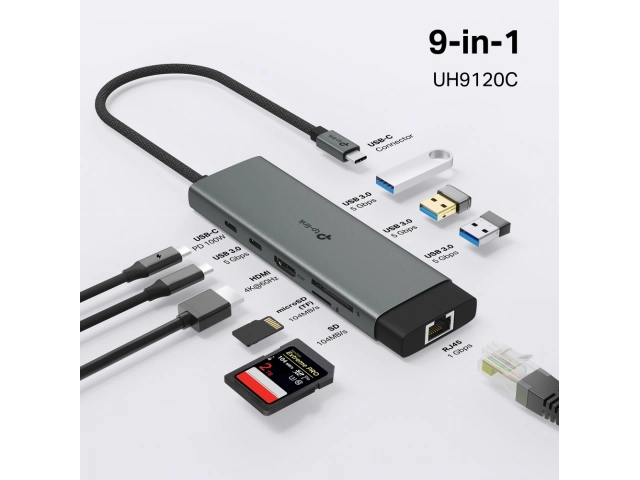 Hub, TP-LINK, UH9120C, USB tipo C, 9 puertos, Incluye, Cable, 180 mm, concentrador