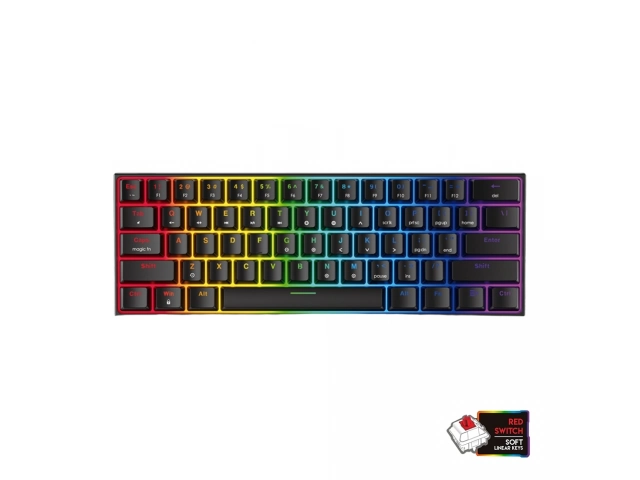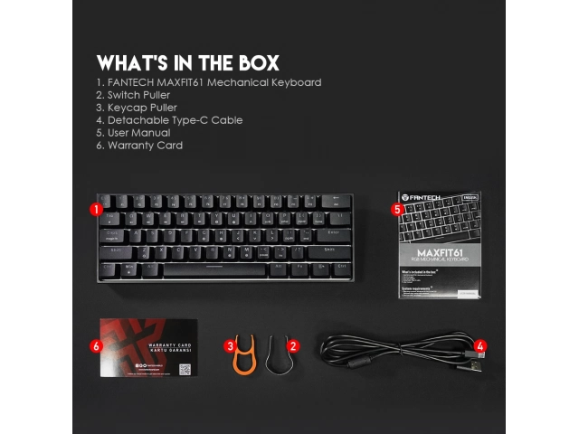 Teclado, Gamer, Mecánico, USB, FANTECH, MAXFIT 61, MK-857, Reducido, RGB, Negro, Inglés, Red Switch