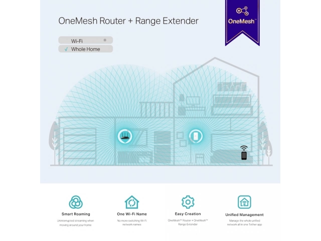 Crea una red Mesh mediante la conexión a un router OneMesh para dar cobertura a todo tu hogar sin problemas.