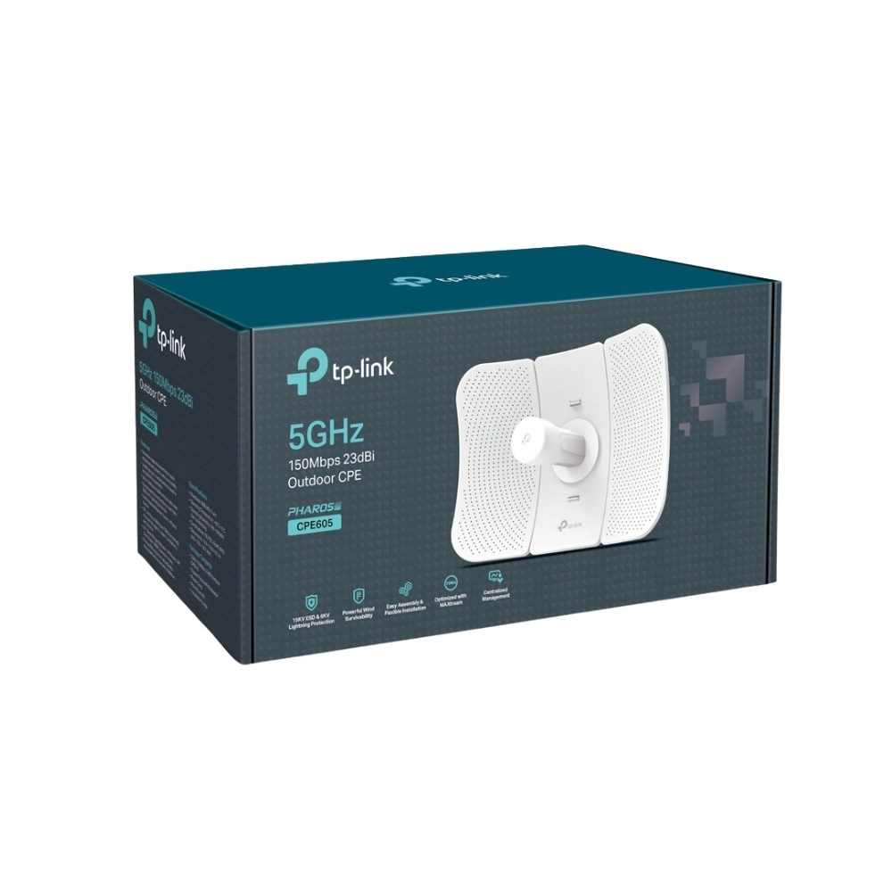 Access Point, TP-LINK, CPE605, Pharos Maxtream, 1 banda, 5 GHz, 150 Mpbs, WiFi Direccional, de alta ganancia, 23dBi, 1 Puerto, 10/100, POE, con inyector, Exterior