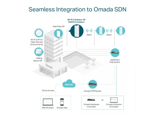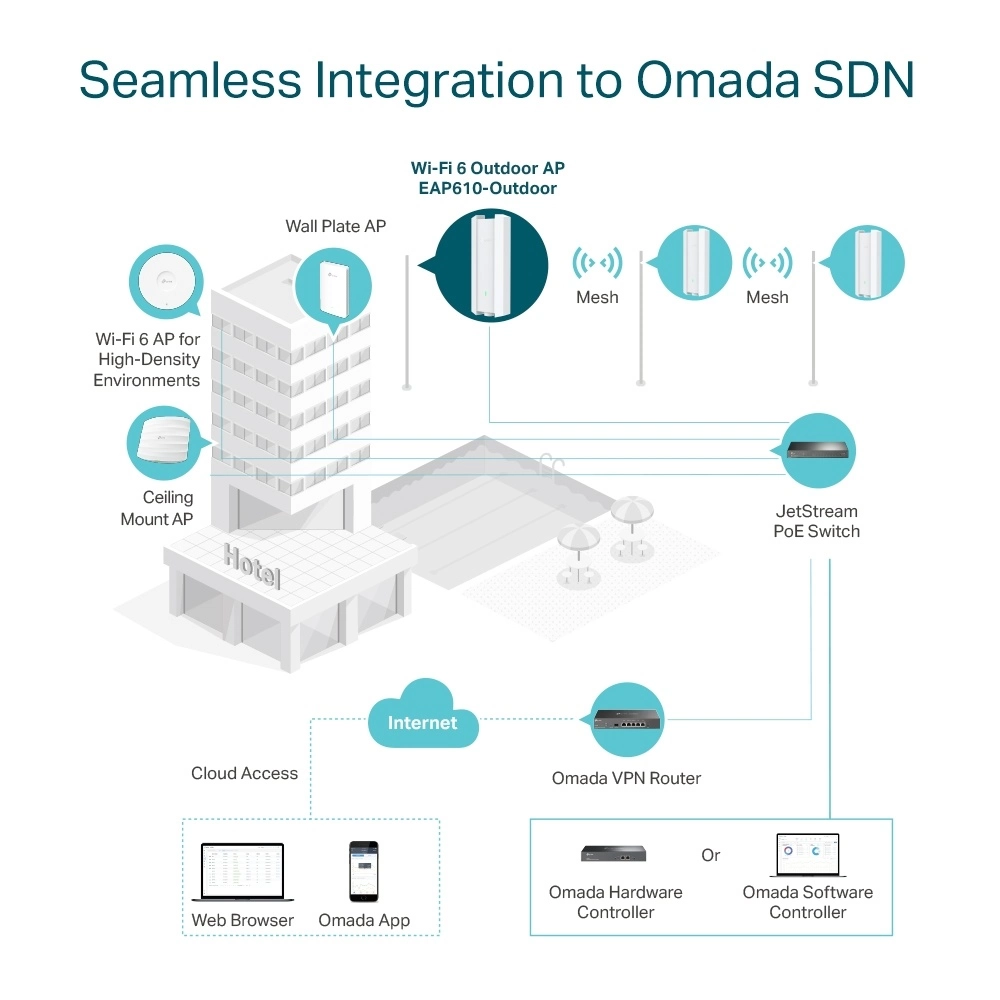 Gestión centralizada de la nube: Se integra en Omada SDN para el acceso a la nube y la gestión remota.