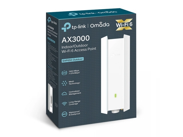 EAP650OUT, Access Point, Punto de acceso, TP-LINK, EAP650-Outdoor, AX300, WiFi 6, Dual Band, 5 GHz, 2.4 GHz, 1 Puerto Gigabit, PoE at, PoE pasivo, Exterior