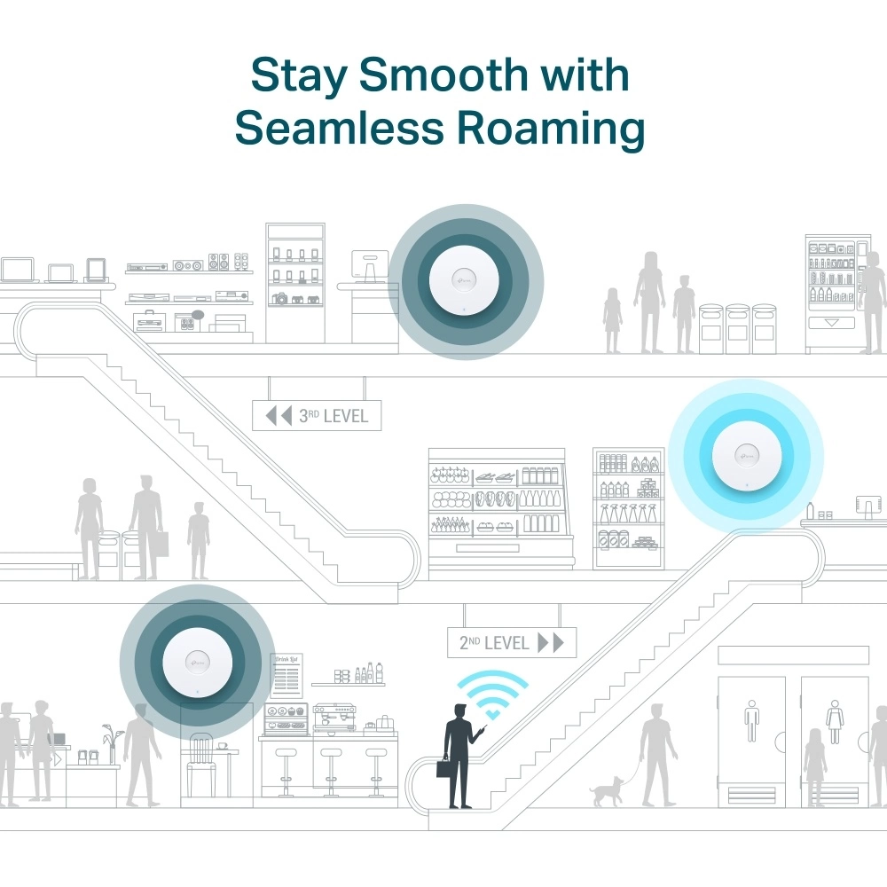 Tribanda. 6 GHz (5760 Mbps), 5 GHz (2880 Mbps), 2.4 GHz (574 Mbps). 1 Puerto 10G. Montaje en Techo/Pared.