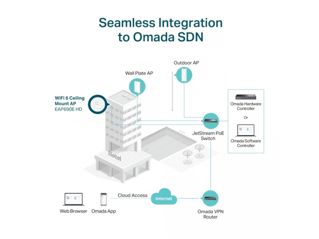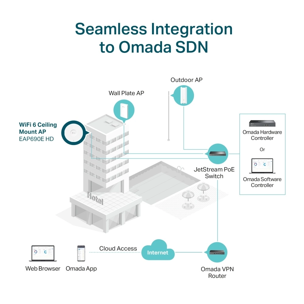 Integrado en Omada SDN: Admite aprovisionamiento sin intervención (ZTP ), gestión centralizada de la nube y monitoreo inteligente.