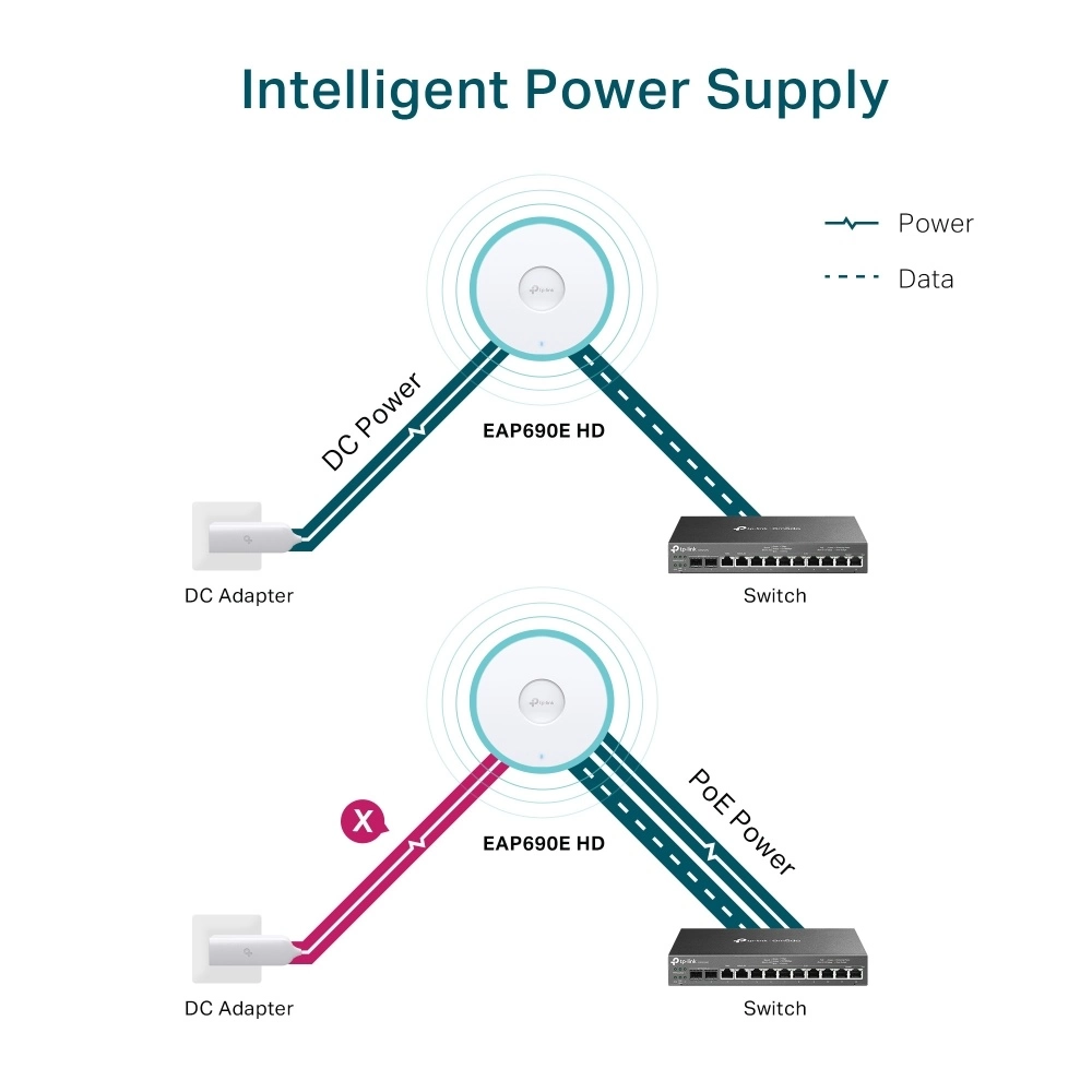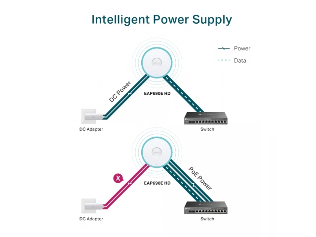 Access Point, Punto de Acceso, TP-LINK, EAP690E HD, AXE11000, WiFi6E, Mesh, CuatriBanda, 6 GHz, 5 GHz-1, 5 GHz-2, 2.4 GHz, 1 Puerto Gigabit PoE++, Montaje, Techo, Pared
