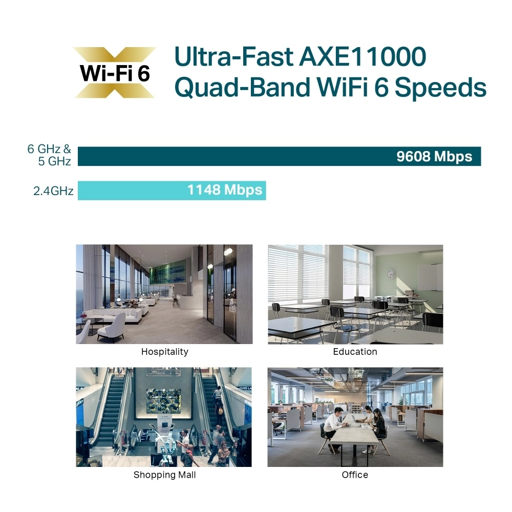 Wi-Fi ultrarrápido de 6 velocidades: 4804 Mbps simultáneos en 6 GHz, 4804 Mbps en 5 GHz y 1148 Mbps en 2,4 GHz para velocidades WiFi de 10,8 Gbps.