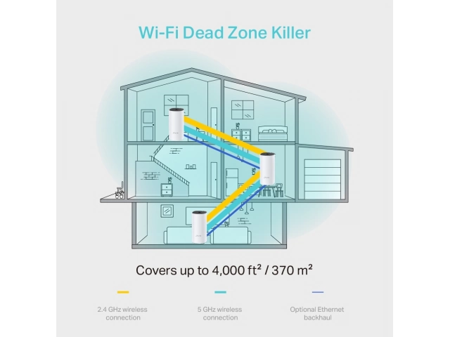 Cobertura en toda la casa sin cortes: La tecnología WiFi Mesh de Deco permite llevar la señal de internet fuerte y estable a todos los rincones de la casa hasta 260m2.