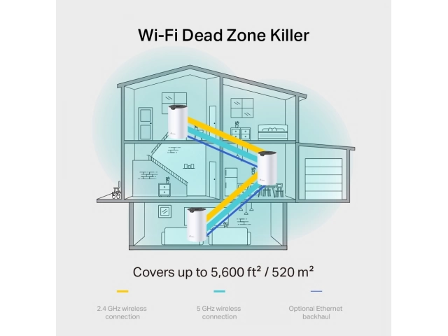Amplia Cobertura sin cortes: La tecnología Wi-Fi Mesh de Deco permite llevar la señal de internet fuerte y estable a todos los rincones de la casa.