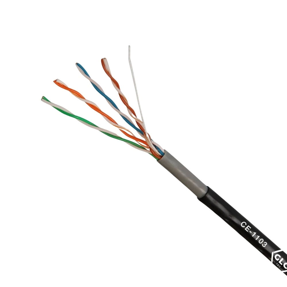 Cable UTP Cat. 5E GLC para exteriores, con doble vaina. Diseñados especialmente para aplicaciones horizontales de forma aérea en redes de cableado estructurado para conectar al usuario con el panel de administración o con los paneles de interconexión.