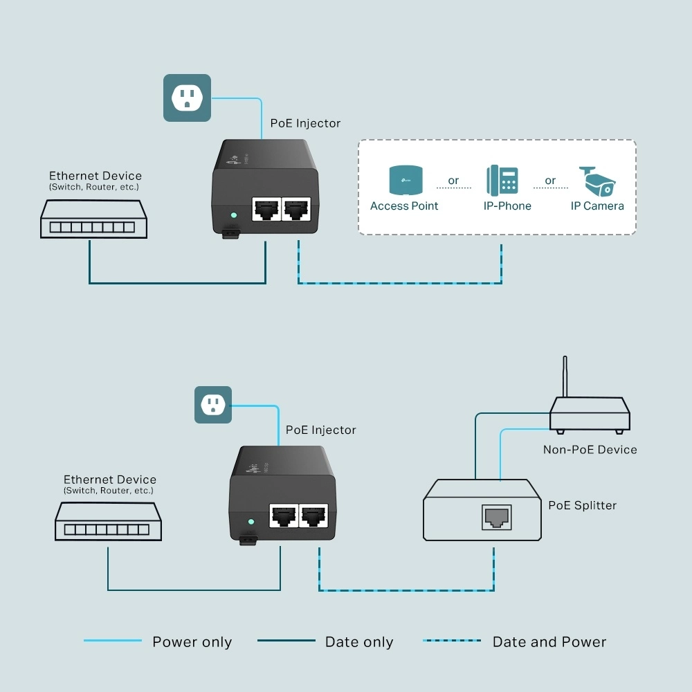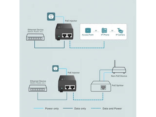 Inyector, TP-LINK, POE160S, 2 Puertos, Gigabit, PoE, at/af