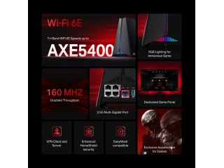 Wi-Fi Ultra Rápido para Juegos Exigentes. Triple banda, hasta 5.4 Gbps. La nueva banda de 6GHz cuenta con menor congestion, perfecta para tus partidas sin lag.ESPECIFICACIONES