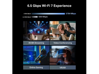 WiFi 7 de doble banda de 6,5 Gbps: Permite que tus dispositivos funcionen a toda velocidad. Disfruta de streaming fluido en 4K/8K, juegos inmersivos de RA/RV y descargas ultrarrápidas.ESPECIFICACIONES