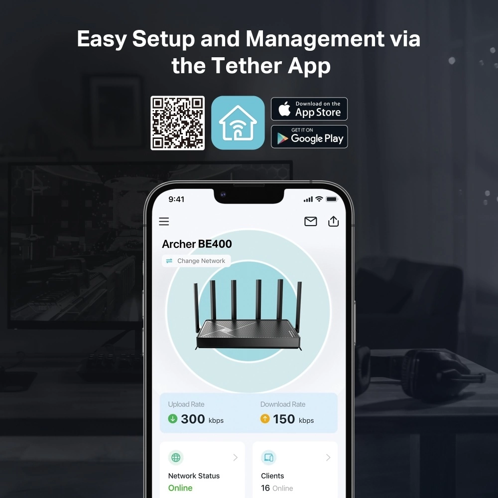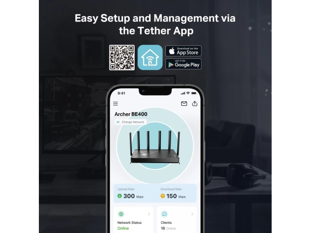 Router, TP-Link, Archer BE400, BE6500, WiFi 7, Dual Band, 5 GHz, 2402, 2.4 GHz, 574 Mbps, Puertos Gigabit, 4 Antenas, Alto Rendimiento