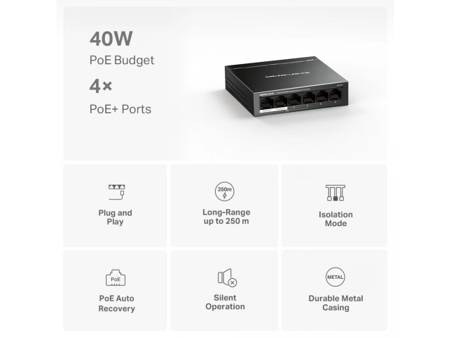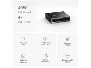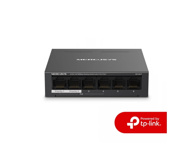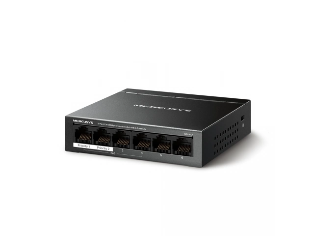Switch, MERCUSYS, MS106LP, Puertos RJ45 10/100, PoE+, at/af, Carcasa metálica, tp-link