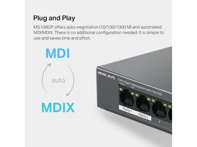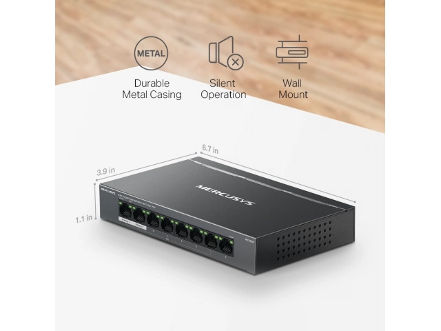 Switch, MERCUSYS, MS108G, Puertos Gigabit, 10/100/1000, Carcasa plástica, tp-link, PoE