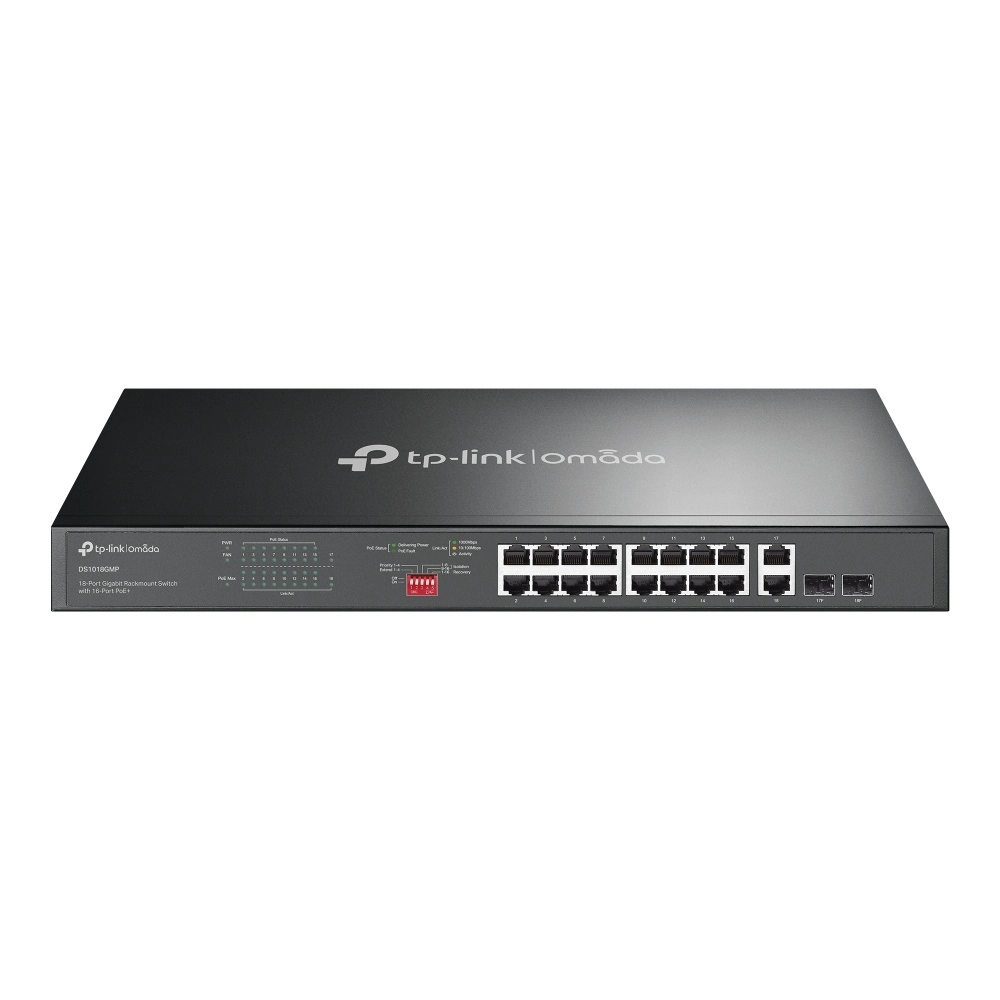 Switch, TP-LINK, DS1018GMP, 16 Puertos, Gigabit, PoE+, af/at, 2, Ranuras SFP, Gigabit, Rackeable, Integrado, en, Omada