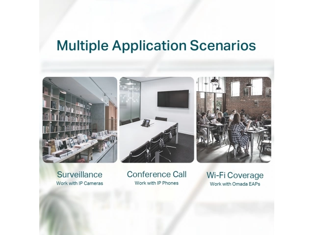 - Admite alimentación PoE de hasta 41 W para todos los puertos PoE.