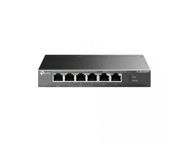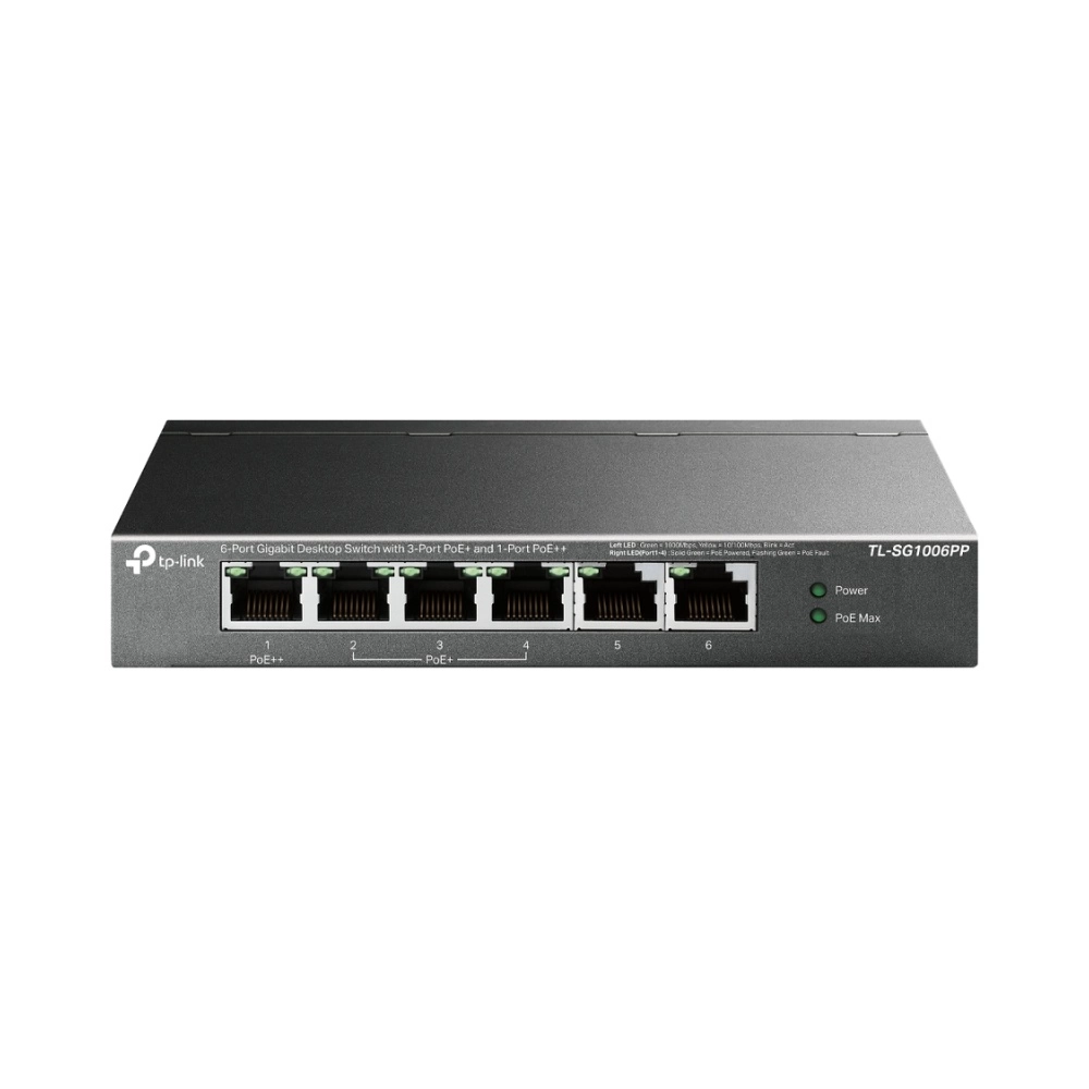 Switch, TP-LINK, TL-SG1006PP, 6 puertos, RJ45, 3 Puertos PoE+, 1 Puerto PoE++, Carcasa, Metálica