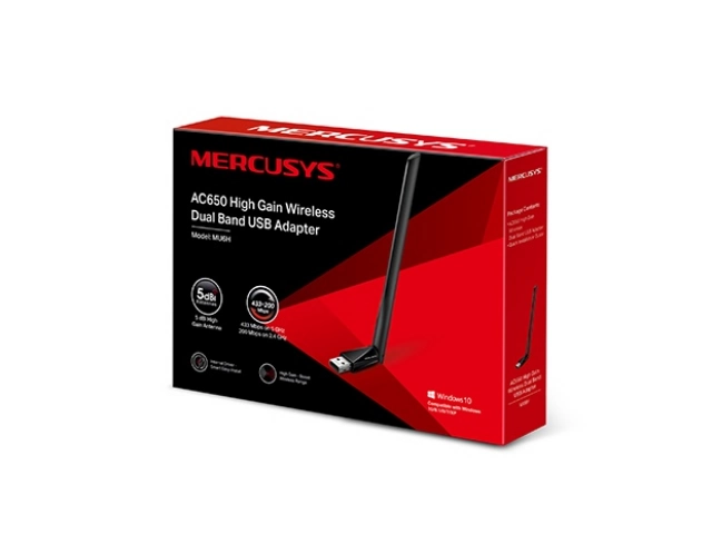 Wireless, Adaptador, Inalámbrico, USB, MERCUSYS, MU6H, AC650, WiFi 5, Alta Ganancia, Dual Band, 5 GHz, 433 Mbps, 2.4 GHz, 200 Mbps, USB 2.0, tp-link, tarjeta de Red