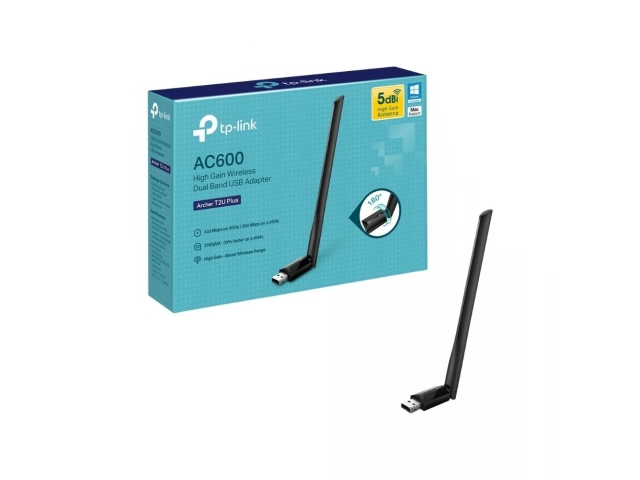 Adaptador, Inalámbrico, Wireless, USB, TP-LINK, Archer, T2U, PLUS, AC600, Alta Ganancia, Dual Band, 5 GHz, 2.4 GHz, USB 2.0, T2UPLUS