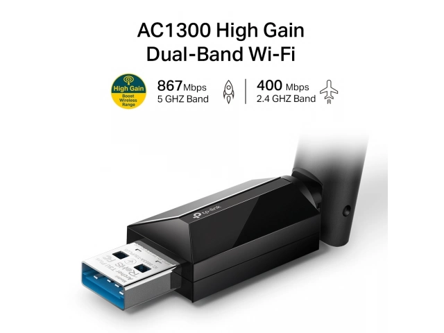 T3UPlus, Adaptador, Inalámbrico, wireless, USB, TP-LINK, Archer, T3U Plus, AC1300, Dual Band, 5 GHz, 867 Mbps, 2.4 GHz, 400 Mbps, USB 3.0, Alta Ganancia