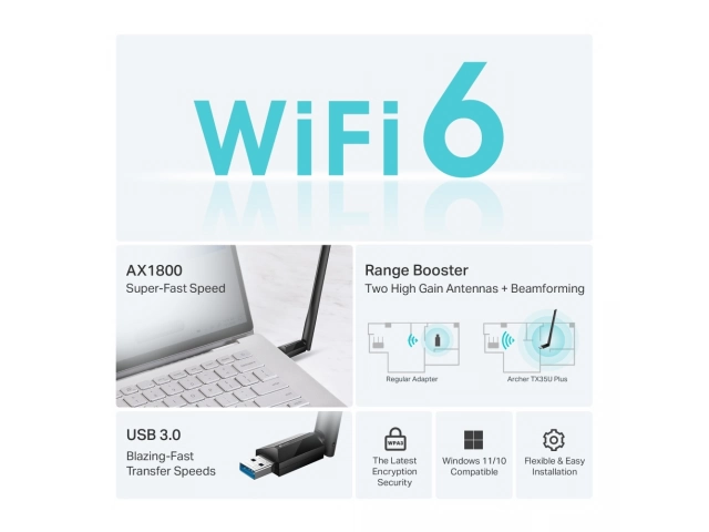 Adaptador, Inalámbrico, USB, TP-LINK, Archer, TX1U Nano, AX300, WiFi 6, Dual Band, 5 GHz (1201 Mbps), 2.4 GHz (200 Mbps), USB 2.0, tarjeta red
