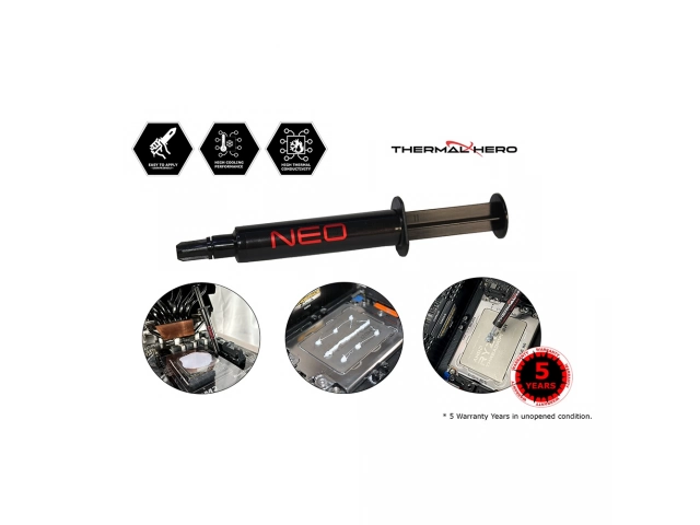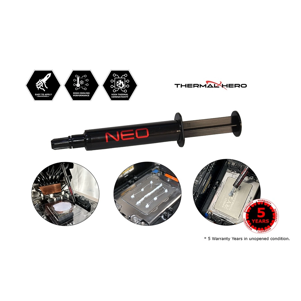 Facilidad de Aplicación: Gracias a su formulación a base de silicona, la pasta térmica Thermal Hero NEO es fácil de aplicar sin problemas de pegajosidad ni excesiva expansión. Esto facilita el proceso de aplicación, garantizando una cobertura uniforme para un rendimiento térmico óptimo.