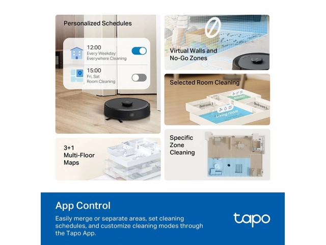 Tapo IQ+ Smart Cleaning. Actúa como cerebro del robot. Gracias a sus múltiples sensores y algoritmos avanzados, puedes dejar tu casa en sus manos.