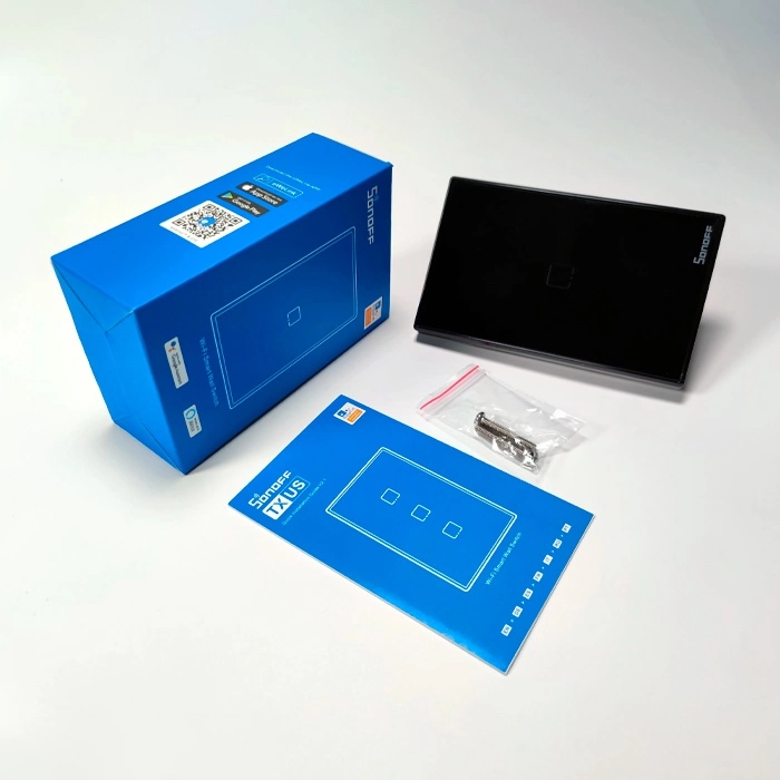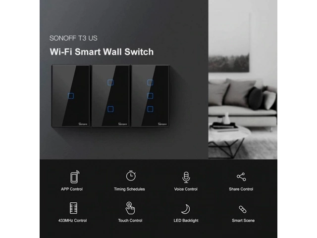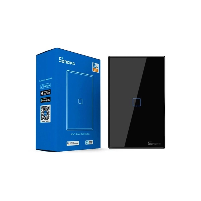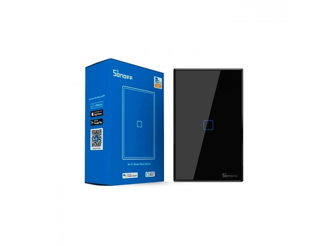 Interruptor, Inteligente, Smart, Pared, Sonoff, T3US1C-TX, WiFi, RF, Táctil, touch, 1 Pulsador, negro