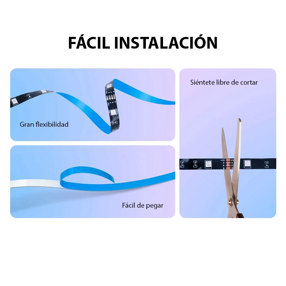 Fácil de instalar: Gran flexibilidad, se pega fácilmente, puedes cortarla para adaptarla al largo que desees (en puntos específicos).