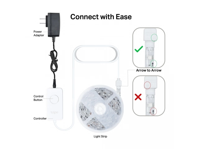 Rápida Instalación: Coloque y fije fácilmente la tira LED con el adhesivo 3M, conéctala a la red WiFi y configúralo a través de la App Tapo.