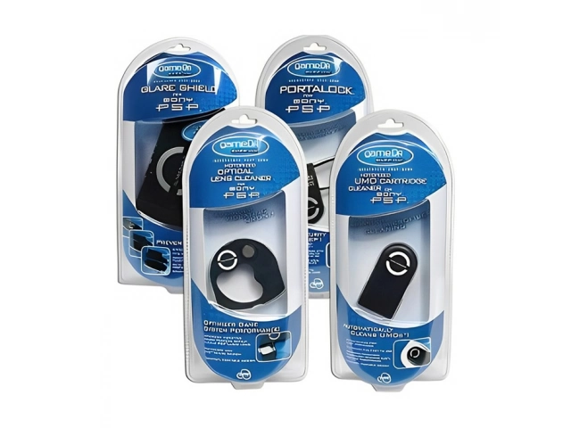 Kit de Accesorios, Sony Play Station Portable, Contiene, protector de pantalla anti reflejo, limpiador motorizado de lentes, de cartuchos, correa de seguridad, y