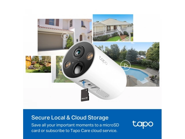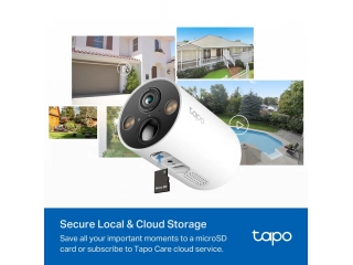 Almacenamiento Local o en la Nube. Elige entre almacenamiento local microSD de hasta 512 GB o el servicio en la nube Tapo Care