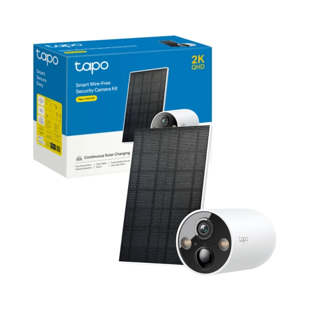 Cámara, WiFi, Panel Solar, TP-LINK, Tapo, C425 KIT, QHD, Visión Nocturna, Exterior, 2K, Detección IA, Visualización, 150º diagonal, 134º horizontal, 77º vertical