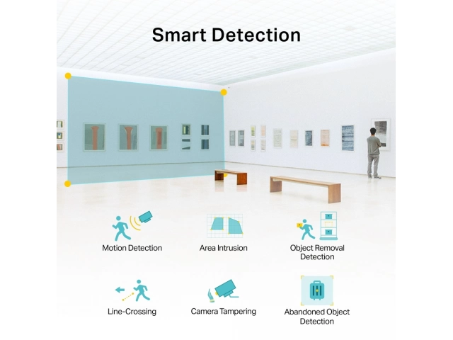 Detección inteligente: Reciba notificaciones y verifique las fuentes cuando alguien cruza un límite, ingresa a un área que ha establecido, obstruye la cámara o elimina/abandona objetos.