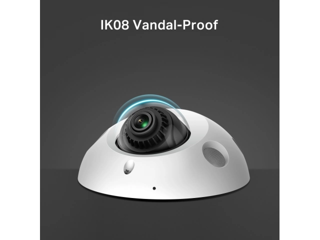 IK08 a prueba de vandalismo: Equipada con una carcasa de domo a prueba de vandalismo, la cámara domo VIGI resiste daños y brinda una protección de seguridad más confiable en escenarios importantes, como cajeros automáticos, pasillos y mostradores de pago.