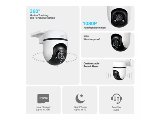 TAPOC500, Cámara, WiFi, TP-LINK, Tapo C500, FHD, Rotatoria, Visión Nocturna, Exterior, 1080p, Audio 2 Vías, Micro SD
